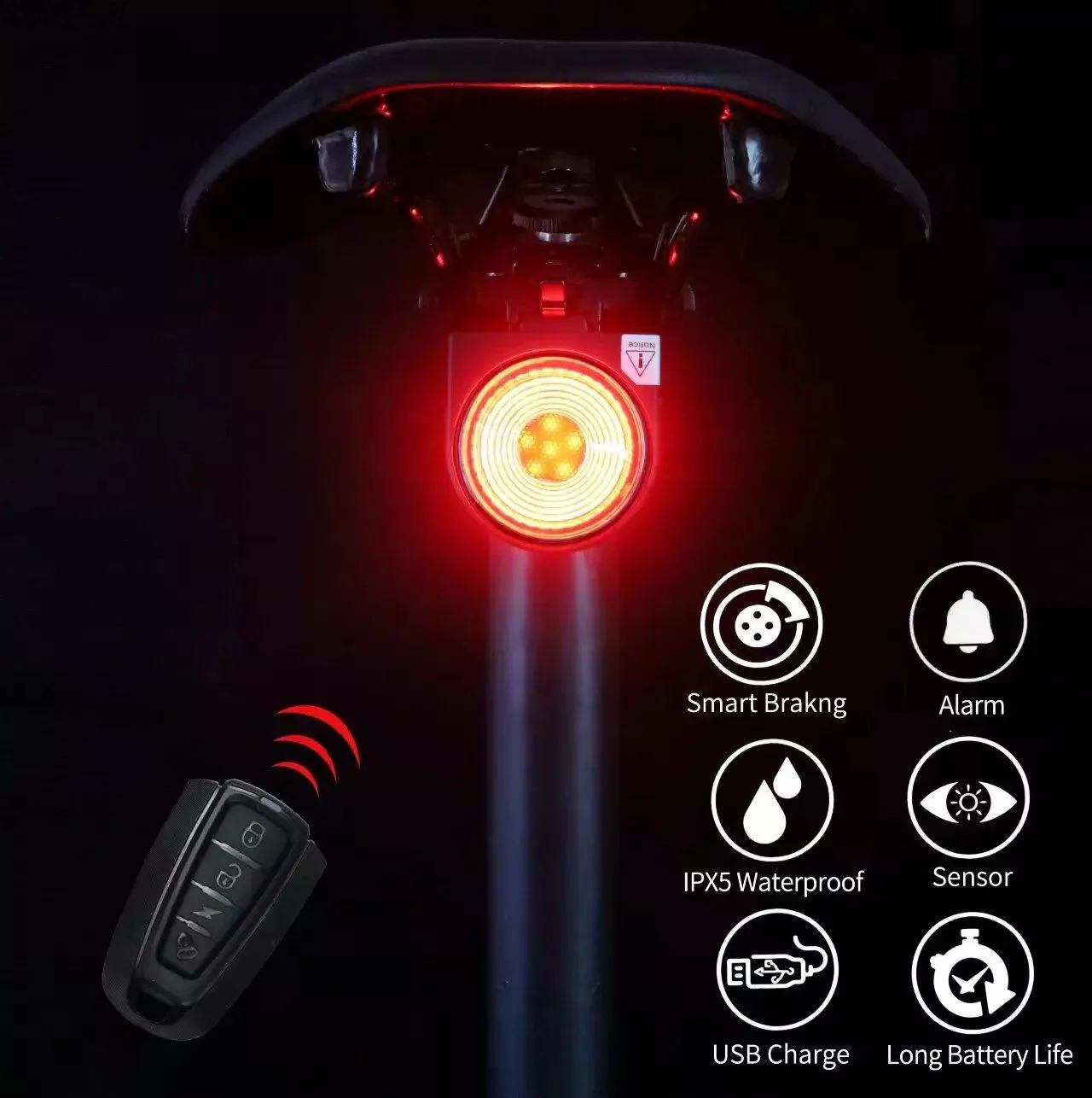 Ideal for daily commutes, leisure rides, or intense cycling sessions, this rear light provides visibility and security in low-light conditions and crowded urban environments. The braking warning feature is especially useful in heavy traffic or during group rides, ensuring a safe distance is maintained by others.