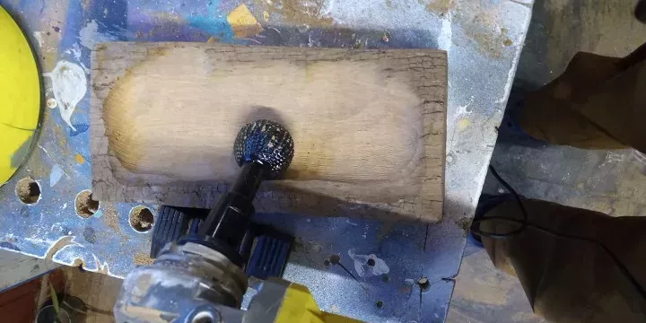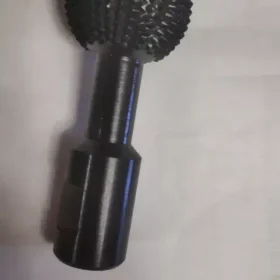 This heavy and sharp tool processes trees quickly, but it has a drawback: a strong deviation of 7mm from the axis. It’s unusable on a small grinder without rpm adjustment but works well on a larger grinder set to a minimum speed.