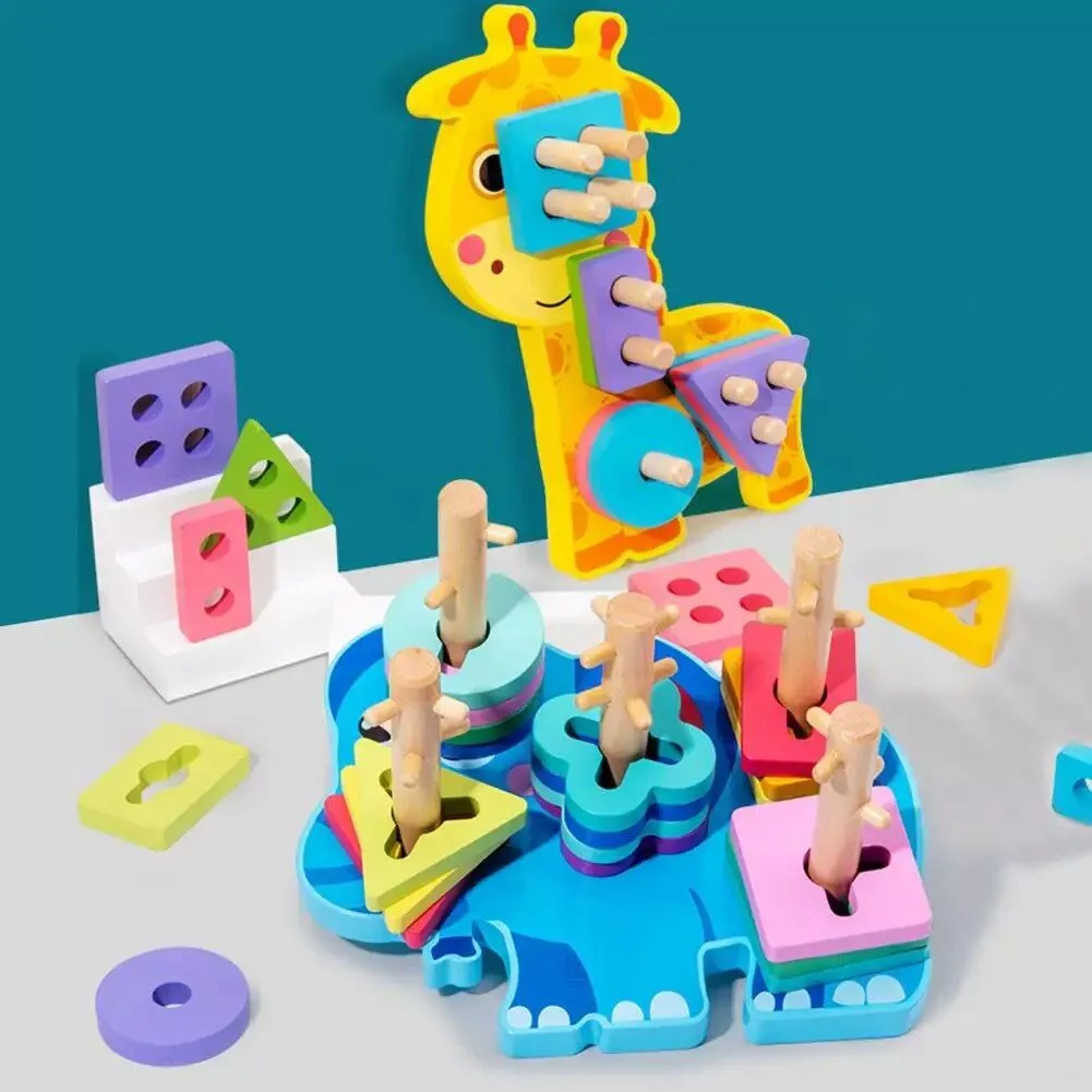 Our Wooden Animal Puzzle stands out with its unique features. Made from eco-friendly wood, it’s safe for your child and the planet. The smooth edges ensure your child’s delicate skin is protected during play. The set includes different shaped columns that encourage your child to distinguish and match them, enhancing their cognitive skills. With two delightful designs to choose from – an elephant or a giraffe – your child will be engaged for hours!